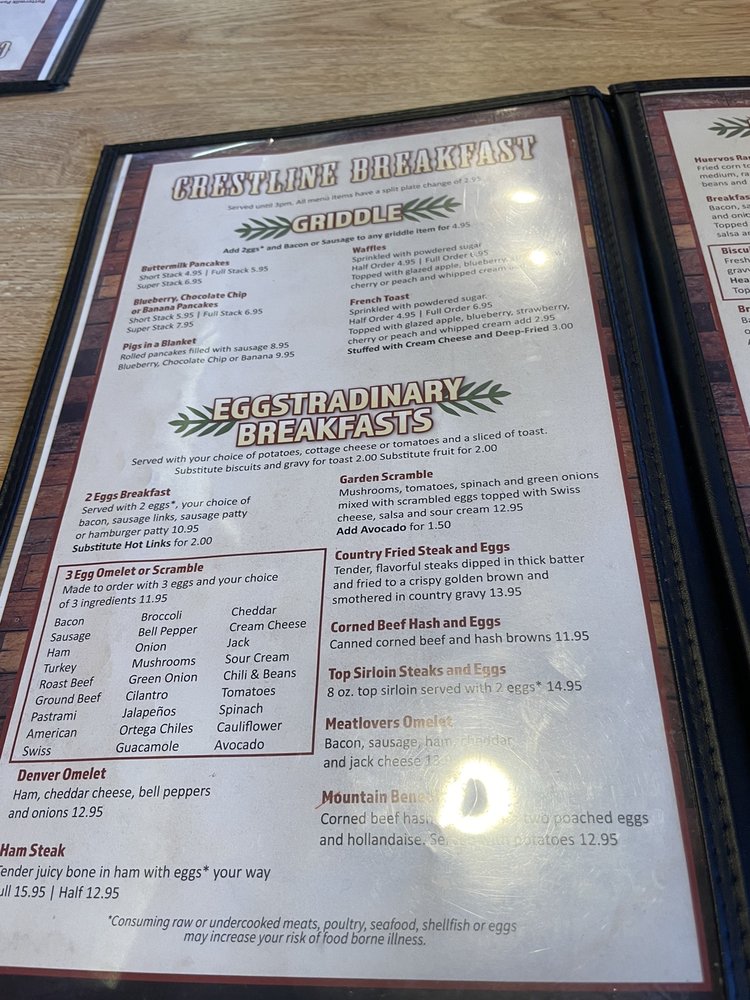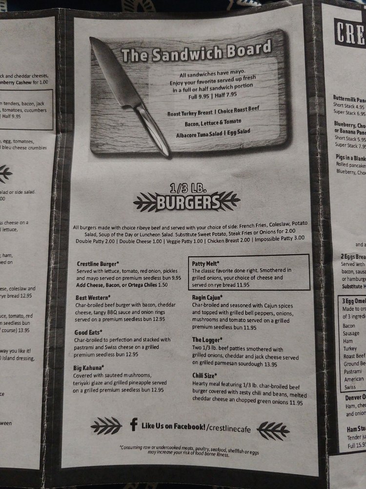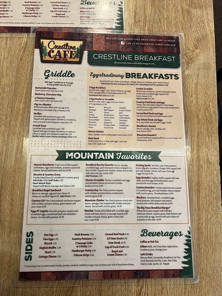 Crestline Cafe Menu (2025 Update)